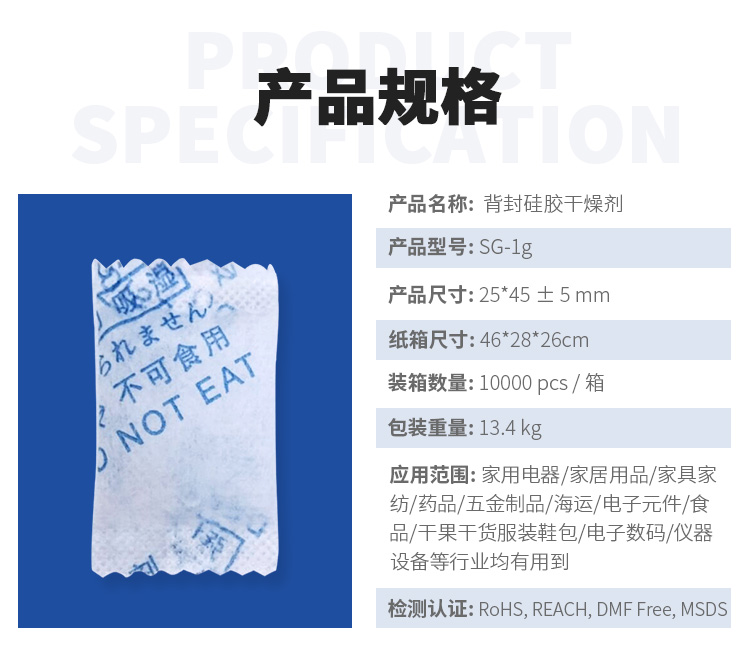 產(chǎn)品名稱:SG-1g硅膠干燥劑